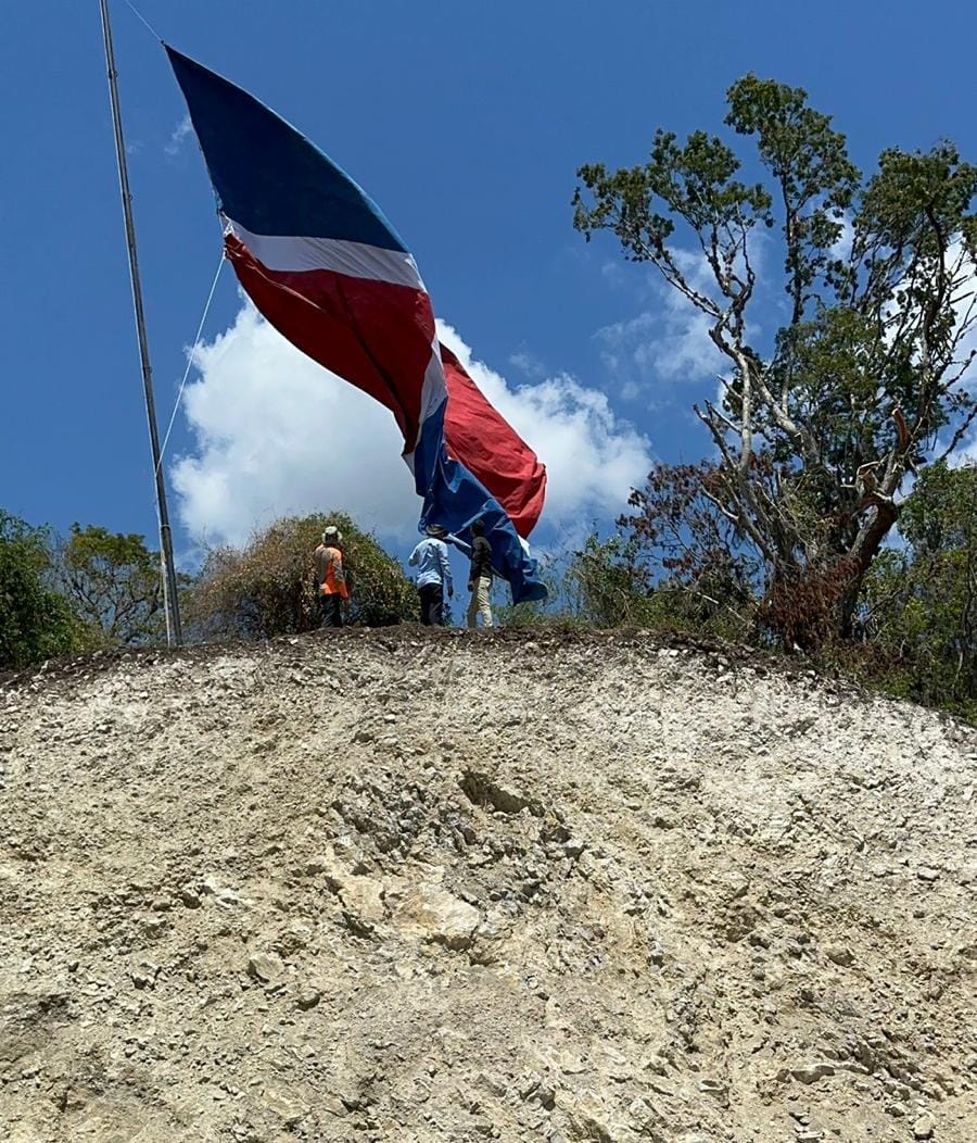 Wazar Gómez precisó que esto  para que pueda soportar el azote del viento y luego de tres días formaron la estructura, pero que el gran reto fue para colocar el mástil en el agujero para lograr izar la bandera.